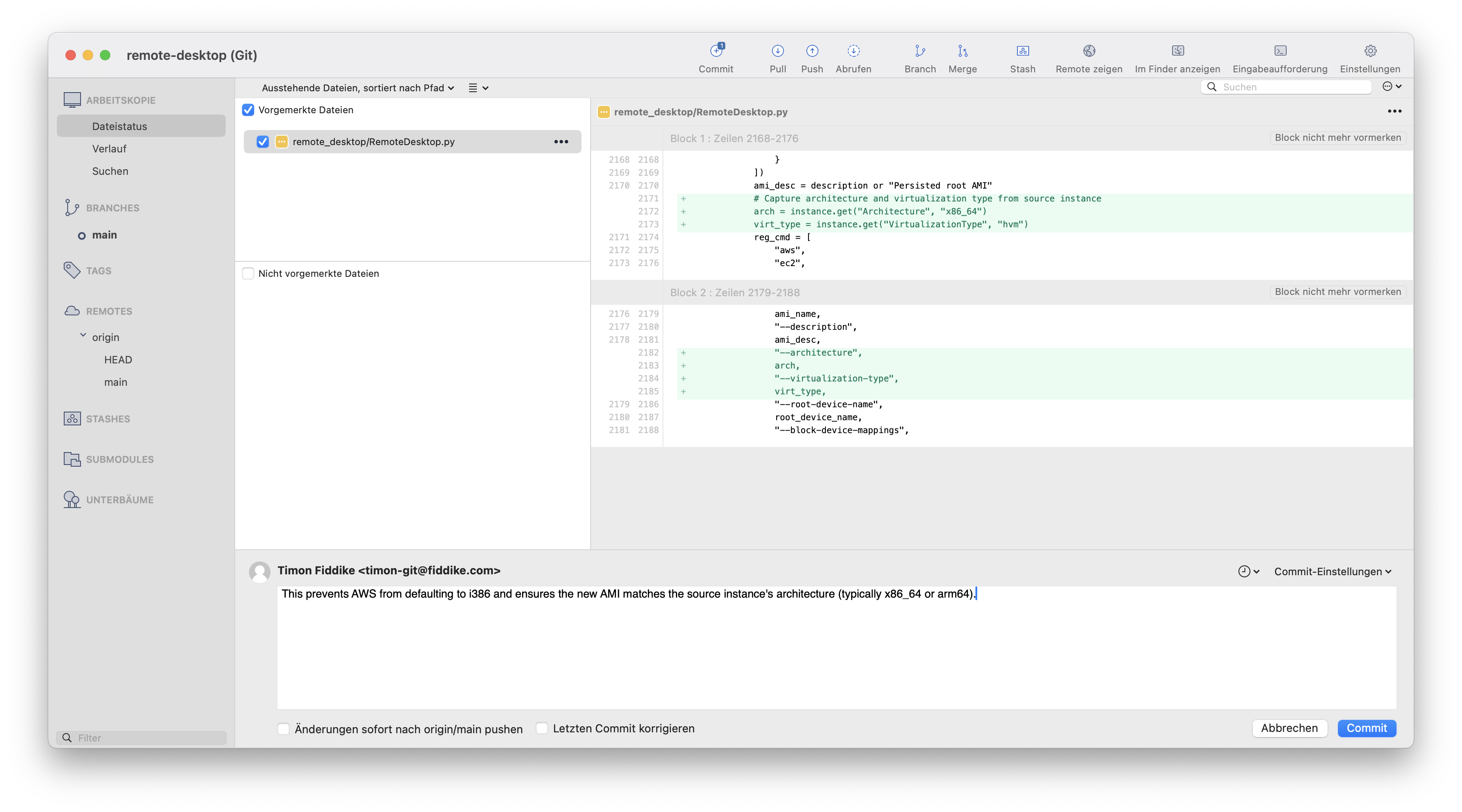 Und im dritten Versuch hat O3-Reasoning es dann auch geschafft. Hier ist in Sourcetree (einem graphischen GIT Tool) zu sehen, worin diese kleine Änderung nun wirklich besteht: