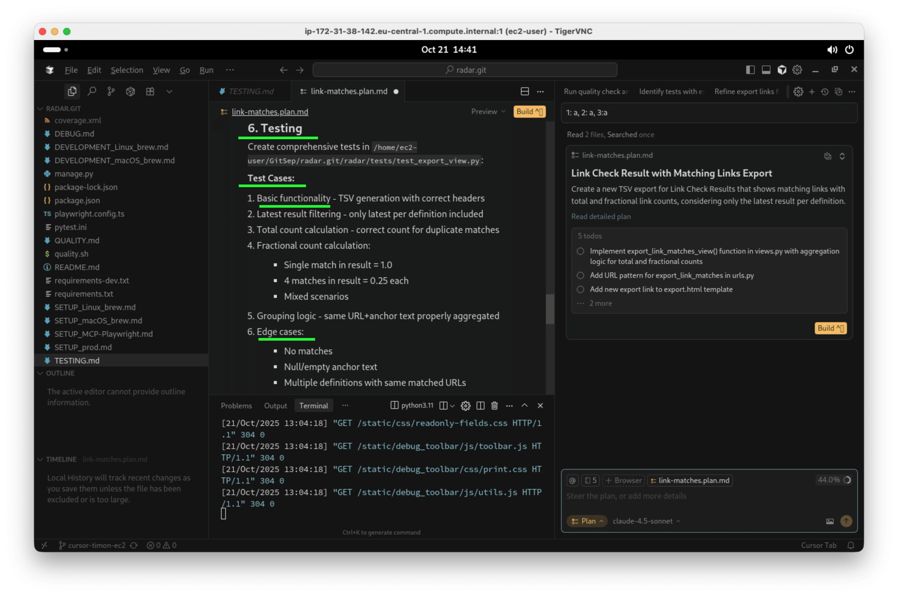 Der Agent hat bemerkt, dass dieses Projekt umfassend mit automatisierten Test entwickelt wird und macht entsprechend detaillierte Vorschläge zum Testen, sehr schön: