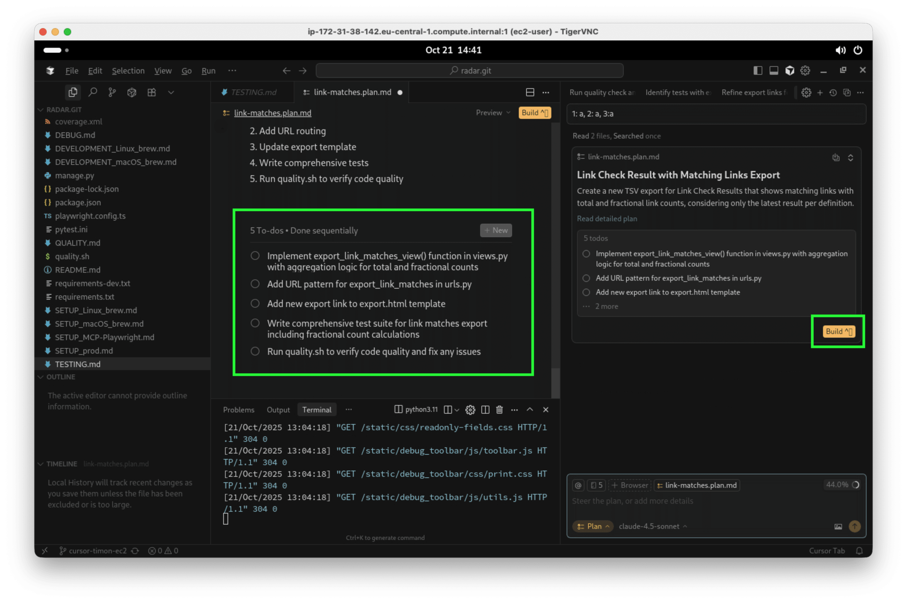 Der Agent hat eine ToDo Liste für sich selbst erstellt, auch mit dieser bin ich einverstanden und klicke deswegen nun auf „Build”: